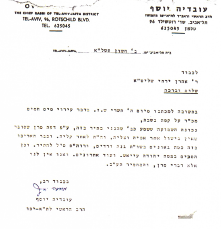This letter was in response to a rumor that Maran permitted the use of Kli Rishon to pour hot water first on the coffee on Shabbat