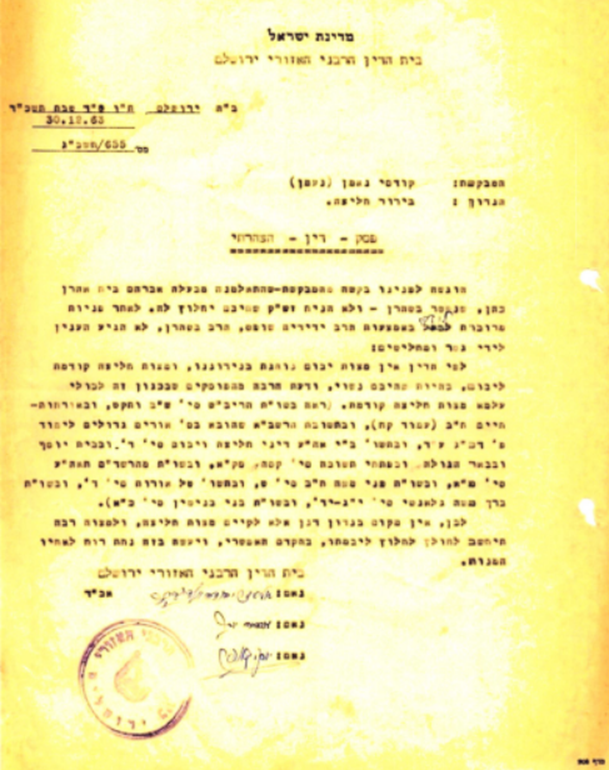 her. After multiple inquiries through Rabbi Yedidia Shuft, the Rabbi in Tehran, the matter has not reached a conclusion and they decided: